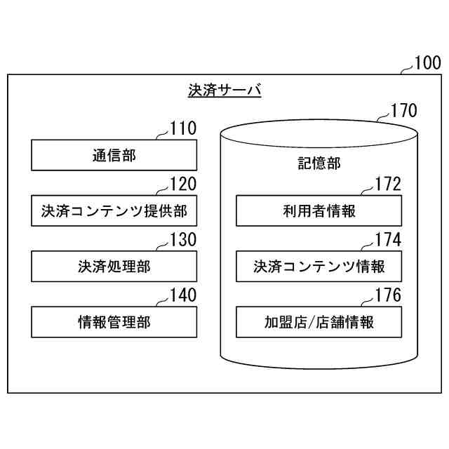 図1は、電子決済サービスが実現されるための構成の一例を示す図である。電子決済サービスは、決済サーバ100を中心として実現される。決済サーバ100は、例えば、一以上の利用者端末装置200、一以上の第1店舗端末装置50、一以上の第2店舗端末装置70、およびクレジットカード会社サーバ300のそれぞれとネットワークNWを介して通信する。ネットワークNWは、例えば、インターネット、LAN(Local Area Network)、無線基地局、プロバイダ装置などを含む。