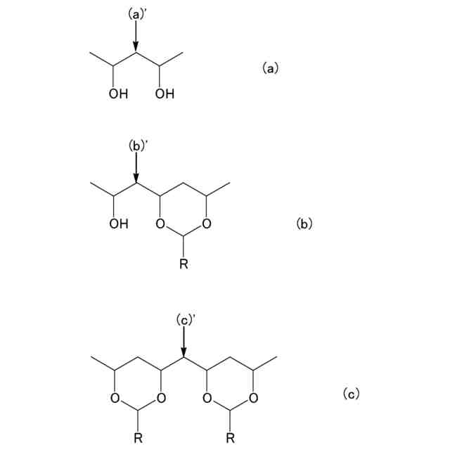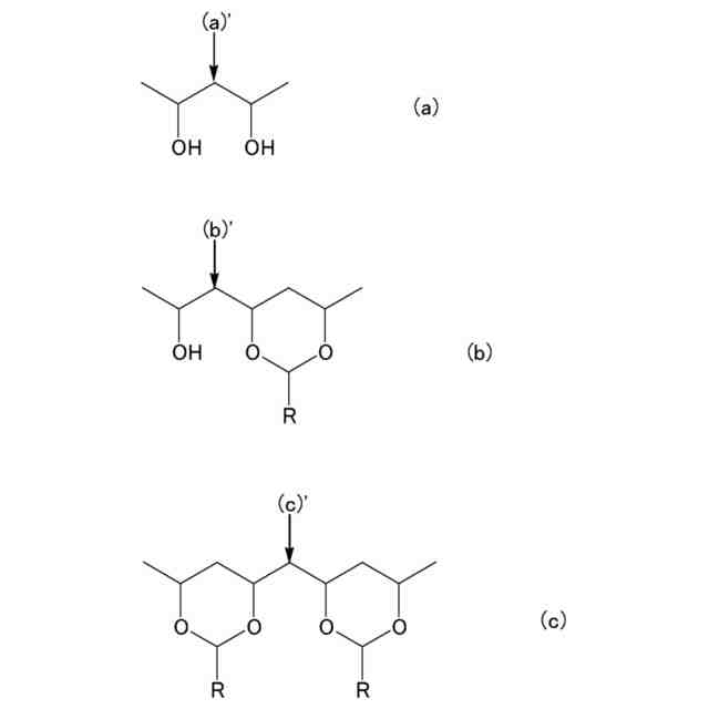 C-NMRで測定した上記式(b)及び上記式(c)で表される2連子の(b)’及び(c)’に示すメチレンC原子のピーク積分値の合計に対する上記式(a)で表される2連子の(a)’に示すメチレンC原子のピーク積分値の割合(水酸基を有する構成単位の2連鎖からなる2連子のピーク積分値の割合)が所定の範囲内であるポリビニルアセタール樹脂は、エタノールの割合が多い溶媒を使用した場合でも粘度変化が少なく、耐シートアタック性に優れるものとすることができ、信頼性に優れた積層セラミックコンデンサを作製できることを見出し、本発明を完成させるに至った。
