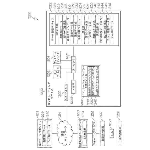 前記表面スキャンデータ(206)は複数の表面スキャン点(1238)を含み、前記表面設計データ(208)は複数の表面設計点(1240)を含み、前記表面スキャンデータ(206)を前記表面設計データ(208)と比較する(102)前記ステップは、