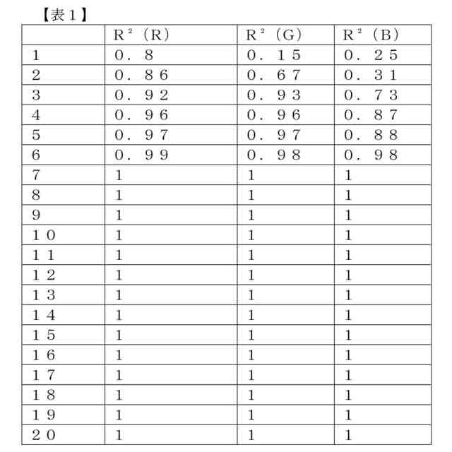 前記フィッティングした検出スコアを代入したRGB多項式回帰式において、特定係数R