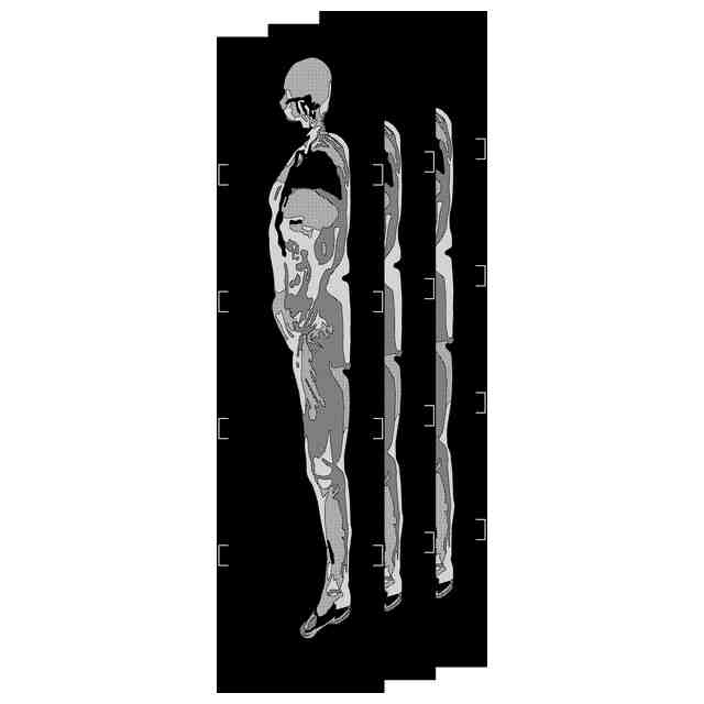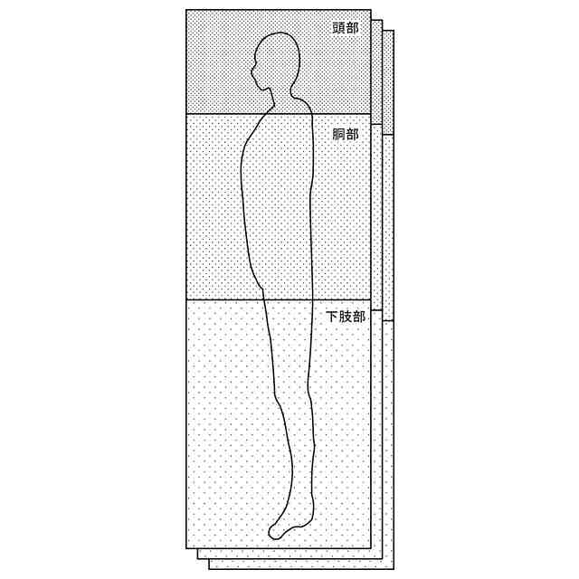 図7は、アキシャル面の全身スライス画像に基づいて設定されたサジタル面の全身スライス画像における大まかな人体区分を示す模式図である。
