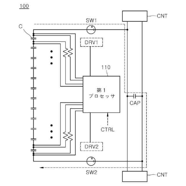 前記第1および第2スイッチそれぞれのオンオフ動作を制御して、前記複数のバッテリーセルからの充電電流による前記キャパシタの電圧充電を制御するプロセッサ;を含み、