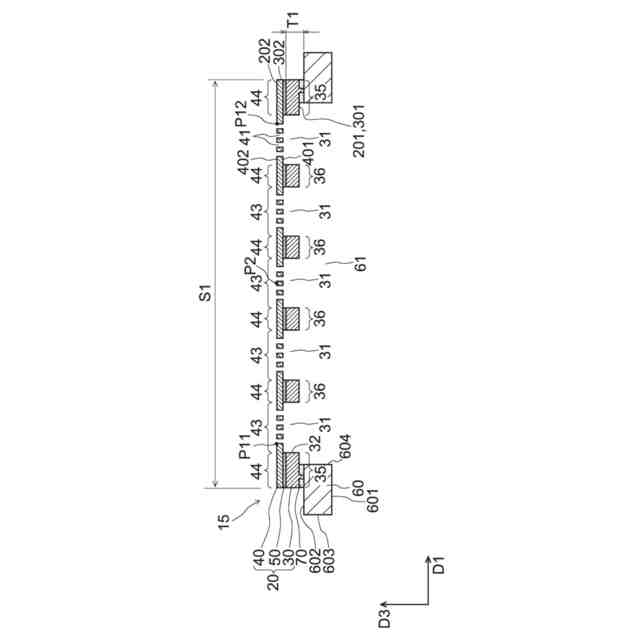 前記基材は、平面視において前記複数の第1開口の間に位置する内側領域と、前記基材の外縁に沿って広がり、平面視において前記複数の第1開口及び前記内側領域を囲む外側領域と、を含み、