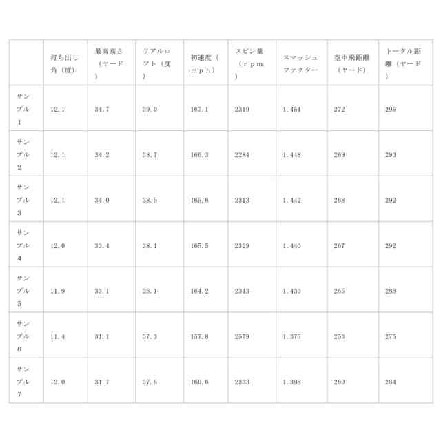 ある実施形態では、ゴルフボールをテスト速度115マイル毎時(mph)、打ち出し角度12.5度、回転数2,600rpmの条件で打つと、ゴルフボールの空中飛距離は270ヤード未満である。