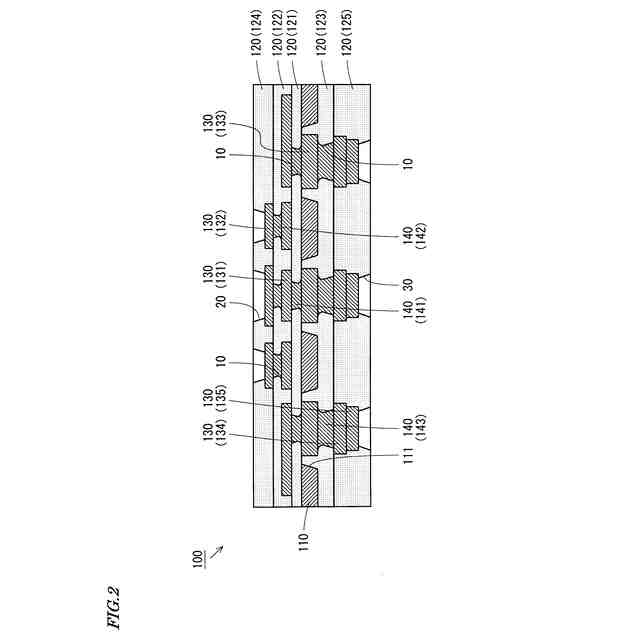 特許文献1には、上記の構造によれば、金属ポストと導体パッドとの間にかかる応力を効果的に分散させ、金属ポストと導体パッドとが接続する部分近傍での剥離またはクラック等の不良の発生が効果的に抑制され得ることが記載されている。また、被覆絶縁層と金属ポストとの密着領域、および被覆絶縁層と導体パッドとの密着領域が大きくされるため、被覆絶縁層と金属ポストとの密着性、および被覆絶縁層と導体パッドとの密着性が向上し、剥離の発生が抑制され得ることが記載されている。