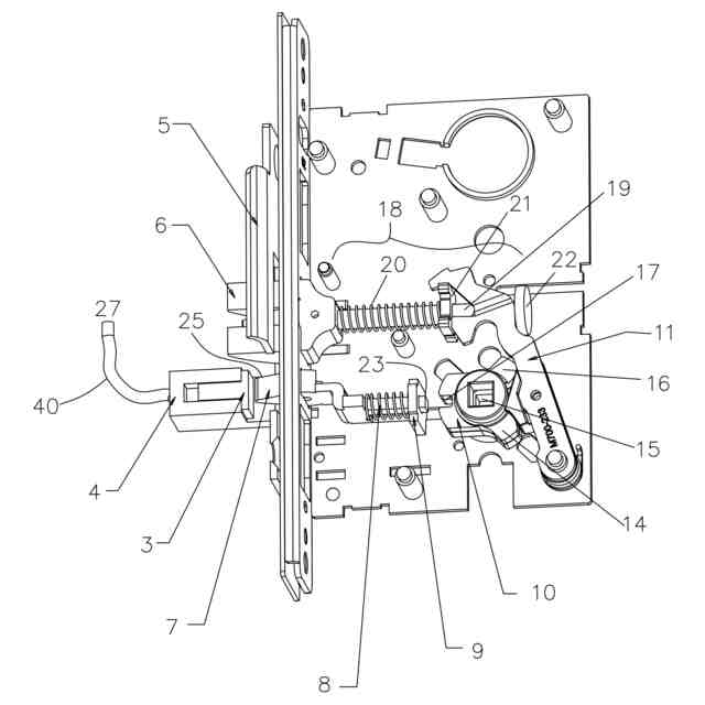 現状技術の電子ドアロックのもう1つの欠点は、電子回路や機械的モーター部分などの部品がドア及び/又はドアハンドルに配置されていることである。ドア内部のこれらの部品は、開閉時にドアが勢いよく閉まる動きによって損傷したり、機能を停止したりする可能性がある。