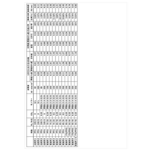 次世代情報通信(高周波5G)による高速通信実現のため、アンテナや伝送路に使用されるプリント基板の誘電体(絶縁材料)には、低伝送損失特性が求められている。これらの背景から、プリント基板向けの絶縁材料として、電気特性に優れたフッ素樹脂材料(PTFE、PFA等)が注目されている。一方、フッ素樹脂材料は、一般的に他材との接着性に乏しいため、接着性改善としてプラズマ処理等の表面改質技術が用いられている(特許文献1等)。