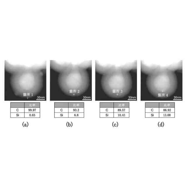 従来の技術は、シリコンと炭素が点接触または面接触によって複合体を形成しており、体積膨張時に炭素とシリコンの結合が切断されやすいという問題が存在する。シリコンと炭素を単純に混合した場合、充放電時に炭素とシリコンの膨張率が異なるため、物理的な接触が失われやすく、電極内の電子伝達経路が切断されるという欠点がある。また、シリコンに炭素をコーティングする方法や、炭素をシリコン内部に分散させる方法においても、シリコンと炭素の膨張率の差により、コーティング層が剥がれたり、炭素がシリコンから脱離するという問題が存在する。これは容量の急激な低下や様々な副反応の可能性を高め、電池性能に非常に悪影響を及ぼす。上記いずれの技術においても、単純な物理的結合を介してシリコン-炭素複合層を形成しているため、結合の強度が弱く、破壊されやすいという問題がある。
