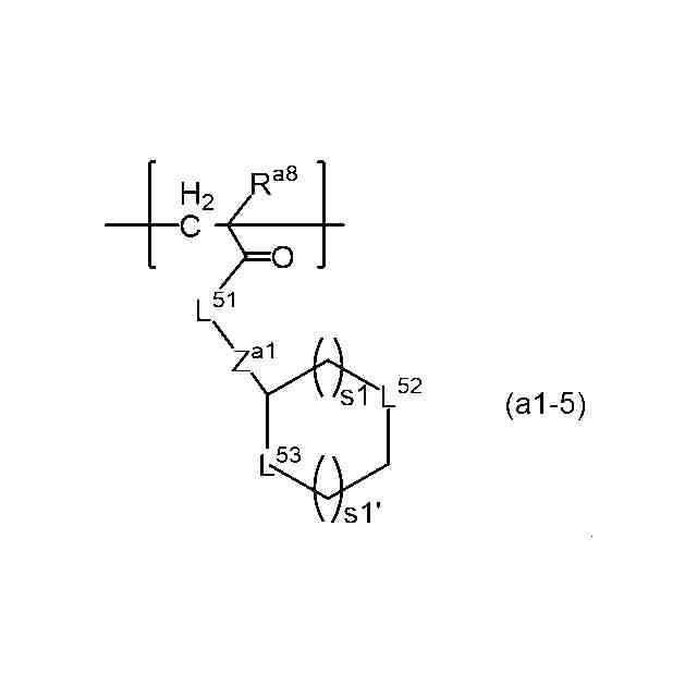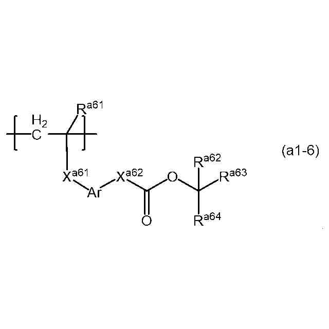 -で置き換わる場合、各基において同様の例を適用するものとし、置き換わる前の炭素数を炭化水素基等の炭素数とする。「組み合わせた基」とは、例示した基を2種以上結合させた基を意味し、それら基の価数は結合形態によって適宜変更してもよい。「由来する」又は「誘導される」とは、その分子中に含まれる重合性C=C結合が重合により-C-C-基(単結合)となることを指す。立体異性体が存在する場合は、全ての立体異性体を含む。各基は、置換基の数等によって、その基に含まれる任意の位置及び数の水素原子が結合部位に置き換わることがある。置換基における炭素数は、被置換基の炭素数には含めない。「酸不安定基」とは、酸(例えば、トリフルオロメタンスルホン酸等)と接触すると、脱離基が脱離して、親水性基(例えば、ヒドロキシ基又はカルボキシ基等)を形成する基を意味する。「塩基不安定基」とは、塩基(例えば、トリメチルアミン、テトラメチルアンモニウムヒドロキシド等)と接触すると、脱離基が脱離して、親水性基(例えば、カルボキシ基又はヒドロキシ基等)を形成する基を意味する。