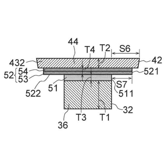 前記第2中間層は、平面視において前記第1開口に重なるが前記第1中間層に重ならない面である露出面を含み、