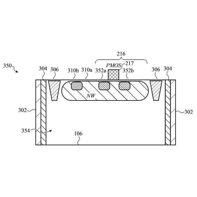 より具体的には、実施形態の第1のセットには、画素アレイの構造が開示される。1つ以上の画素は、SPAD、並びに画素内に形成され、SPADと動作可能に接続された1つ以上の制御トランジスタを含むことができる。制御トランジスタは、画素アレイの半導体基板内に形成され、画素は画素の集光面とは反対側の画素の上面に隣接し得る。画素は、画素の上面から画素の集光面まで少なくとも部分的に延在している絶縁壁の間に配置され得る。SPADのアノード層は、半導体基板内に形成され得、基板はドーピング勾配で形成され得る。第1のファミリー内の特定の実施形態は、1つ、2つ、又は3つの制御トランジスタを有する実施形態を説明する。
