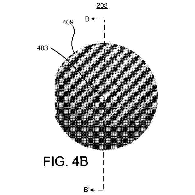 図4Bは、一実施形態による、推進機ファンのノーズコーン断面の正面図を示す。