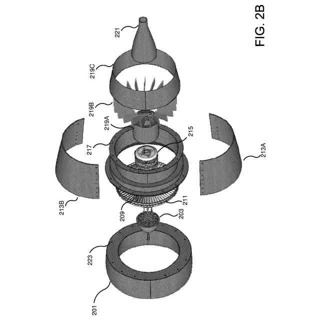 図2Bは、一実施形態による推進機ファンの第2の分解図である。
