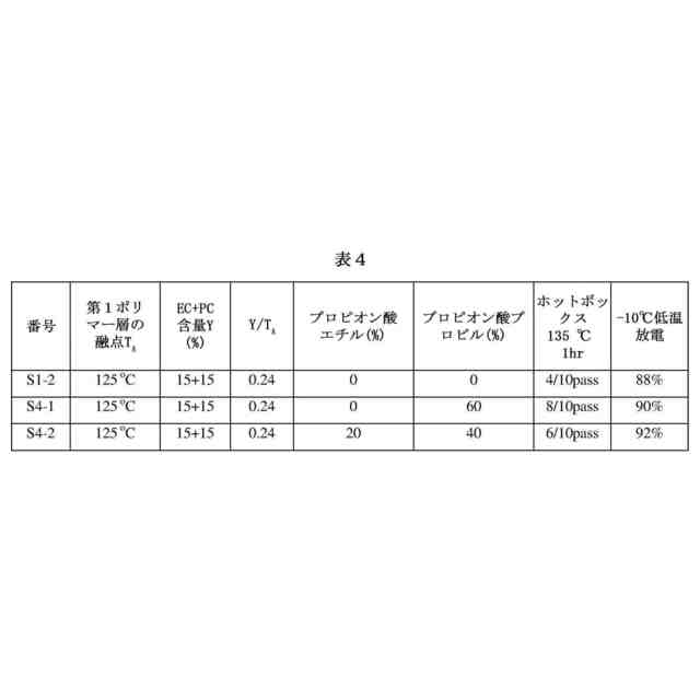 一つの実施例において、前記電解液は、エチレンカーボネートとプロピレンカーボネートとを含み、ここで、前記電解液の重量に基づいて、前記エチレンカーボネートの重量分率と前記プロピレンカーボネートの重量分率との合計は、Y%であり、Yは20~80であり、そして、YとT