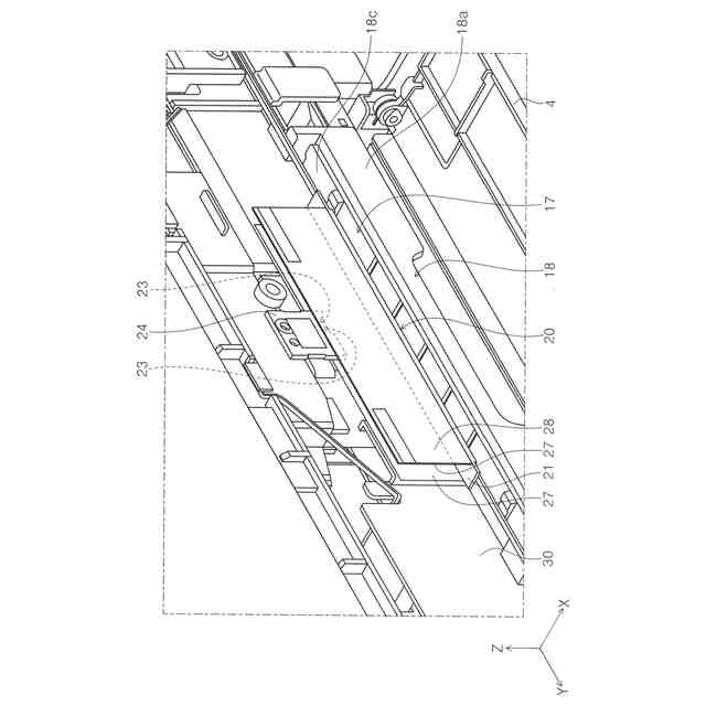 前面カバーを取り外し、基板を露出させた状態のプリンター前面の部分拡大斜視図。