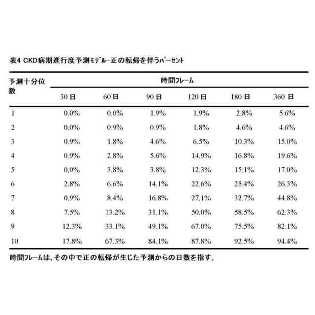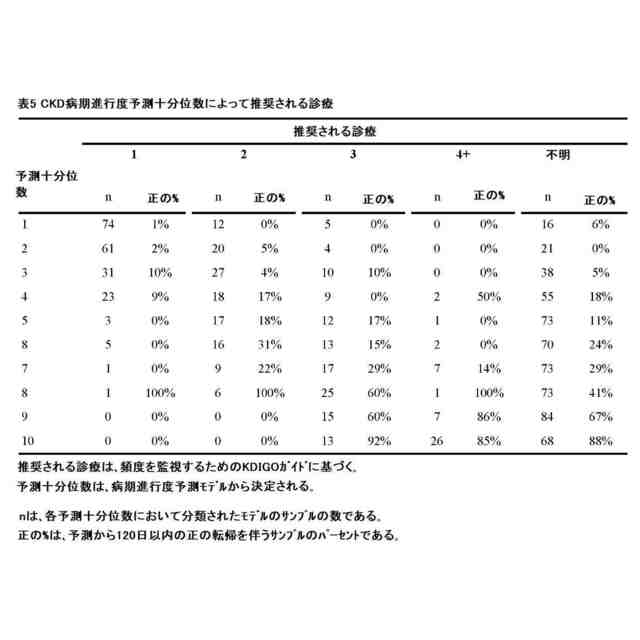 故に、個人のCKD進行度の正確な予測および/または個人が緊急に透析を始める必要があるであろう可能性を提供する、CKD臨床医診断ツールの必要性が存在する。