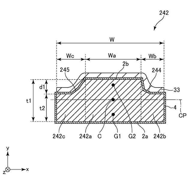 前記錘部は、表裏関係にある第1主面および第2主面を有しており、