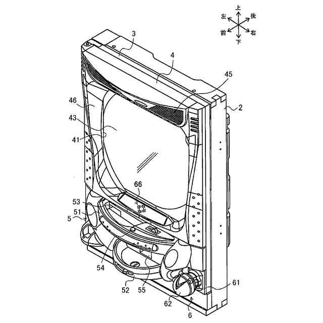 第1のパチンコ遊技機を後方向右斜め上から見たときの外観を示す斜視図の一例である。