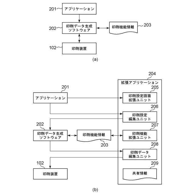 標準ドライバには機能拡張用のアプリケーション(以下、「拡張アプリケーション」とも呼ぶ)を関連付けることができる。拡張アプリケーションは、印刷装置を提供するベンダが提供することができる。ベンダはこの拡張アプリケーションを提供することにより、標準ドライバのみでは実現できない機能(拡張機能)を提供することができる。特許文献1には、拡張アプリケーションにより、スタンプ機能等の機能を拡張する技術が開示されている。