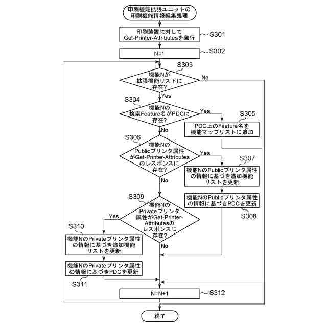 印刷機能拡張ユニットの印刷機能情報の編集処理のフローチャート。