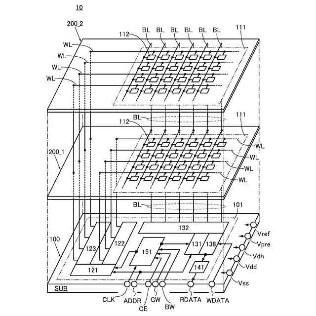 特許文献1には、周辺回路を構成した半導体基板上に、OSトランジスタを用いた複数の