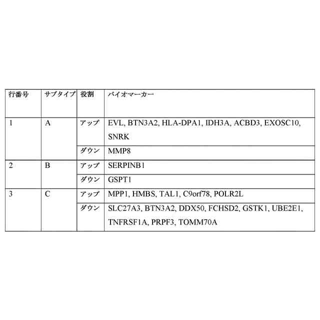 バイオマーカー3が、MPP1、HMBS、TAL1、C9orf78、POLR2L、SLC27A3、BTN3A2、DDX50、FCHSD2、GSTK1、UBE2E1、TNFRSF1A、PRPF3またはTOMM70Aのうちの1つであり、