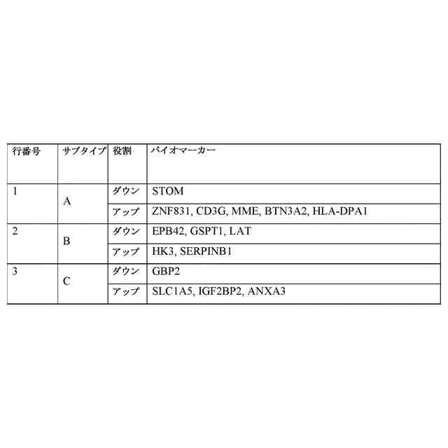 バイオマーカー13が、STOM、MME、BNT3A2、HLA-DPA1、ZNF831またはCD3Gのうちの1つであり、