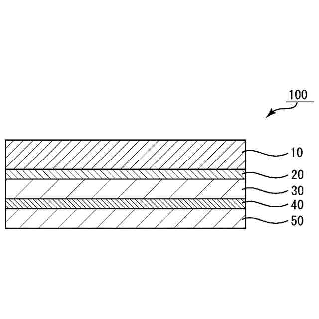 図1は、本発明の1つの実施形態に係る位相差層付き偏光板の概略断面図である。図1に示すように、位相差層付き偏光板100は、偏光板10と、第1の位相差層20と、第1の粘着剤層30と、第2の位相差層40と、第2の粘着剤層50とをこの順に有する。すなわち、第1の位相差層20と第2の位相差層40とは、第1の粘着剤層30を介して積層されている。第1の位相差層20および第2の位相差層40は、液晶化合物を含んで構成されている。第1の粘着剤層30は、厚みが5μm~30μmであり、25℃における弾性率が10