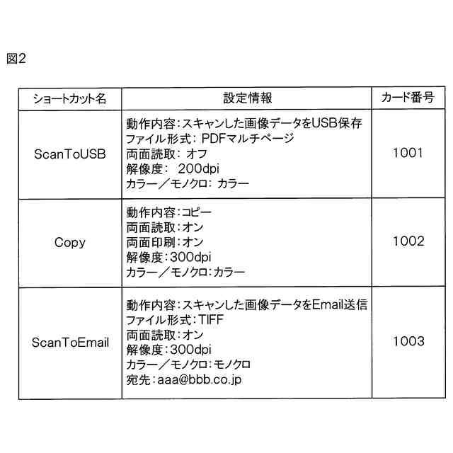 従来、スキャナやプリンタ、複合機(MFP:Multi-Function Peripheral)などの画像処理装置には、ショートカット機能を有するものがある。ショートカット機能を有する画像処理装置では、スキャンなどの各種機能に関する設定が予め登録されて、機能の実行に際してその登録されている設定が呼び出される。