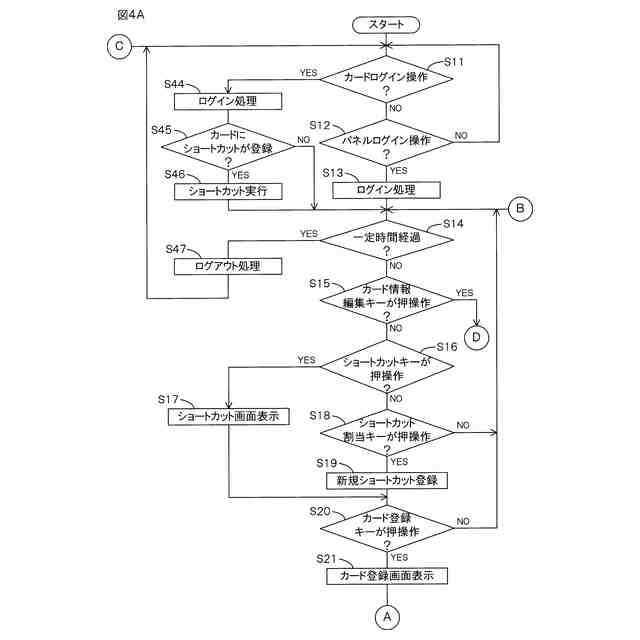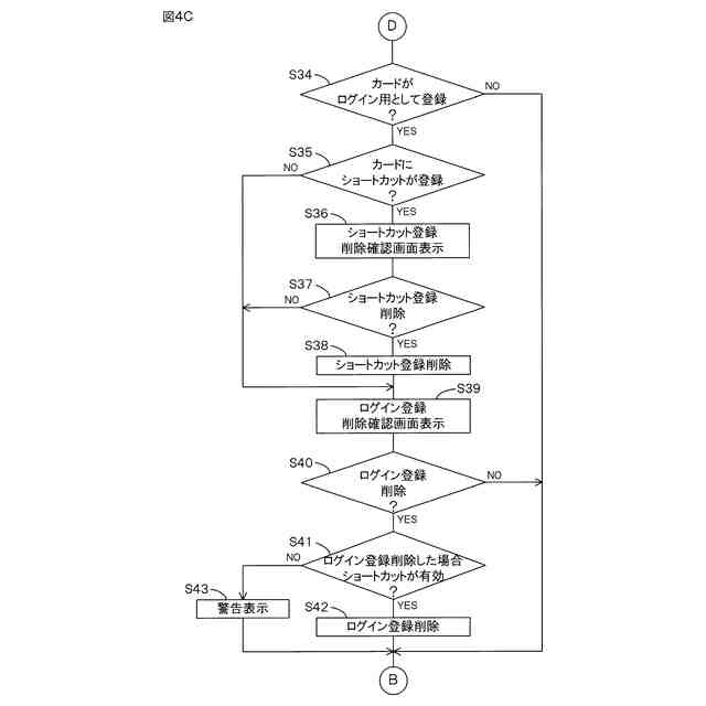 【解決手段】ショートカット登録される各種の設定に係る設定情報は、ICカード5のカード番号およびショートカット名と対応づけて、不揮発性メモリ22に記憶される。不揮発性メモリ22に設定情報がカード番号およびショートカット名と対応づけて記憶されている状態において、そのカード番号とユーザ名およびパスワードとを対応づけて不揮発性メモリ22に記憶させる指示があると、カード番号がユーザ名およびパスワードと対応づけられて不揮発性メモリ22に記憶される。