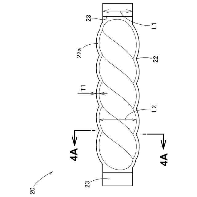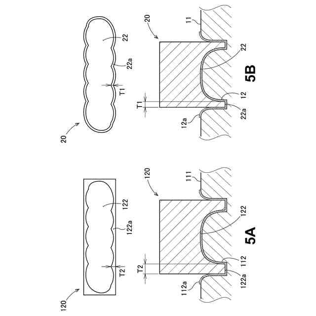 前記模様形状部の長手方向の端部において、前記模様形状部よりも高く突出している突出部をさらに有し、