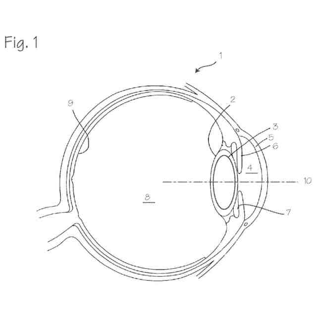 図1及び図2は、患者の眼内における眼内薬物送達システムの配置及び使用を図示する。眼1は、水晶体2(眼の天然レンズ)及び水晶体嚢3と、前眼房4とを含み、前眼房4は、角膜5と、虹彩6と、角膜と虹彩との間の空間を満たす房水と、虹彩と水晶体嚢との間の毛様溝(後眼房)7とを含む。後腔/硝子体8は、水晶体と網膜9との間の大きな空間である。眼の天然レンズ2は、光軸10により特徴付けられる(薬物送達プラットフォーム及び関連する眼内レンズ組立体の以下の説明において、後方及び前方という用語は、角膜が前方であり、網膜が後方である眼の解剖学的構造に関して使用される)。