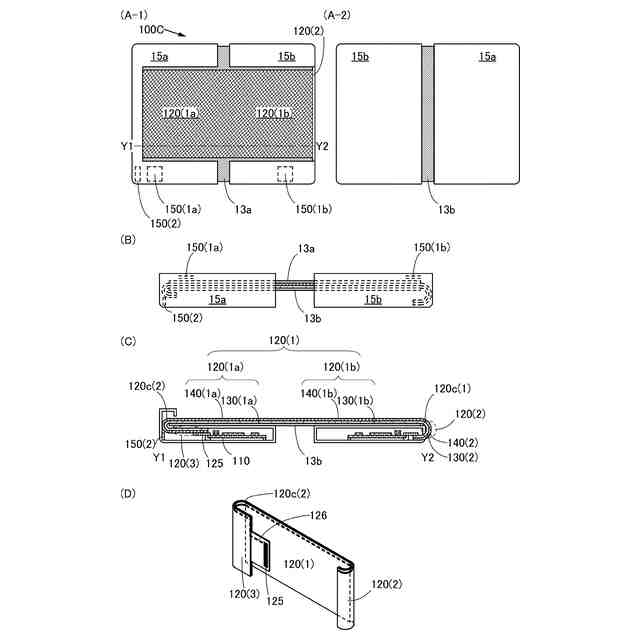 前記第3の部材は、前記第3の表示領域とともに折り曲げが可能であり、
