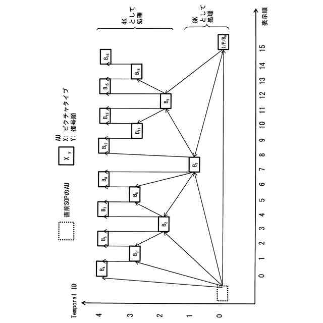 非特許文献2は、デジタル放送におけるHEVC方式に基づいた映像信号圧縮を規定し、SOP(Set of Pictures)という概念を導入している。SOPは、時間方向階層符号化を行う場合に各AU(Access Unit) の符号化順及び参照関係を記述する単位である。その構造には、L0構造、L1構造、L2構造、L3構造、およびL4構造がある。