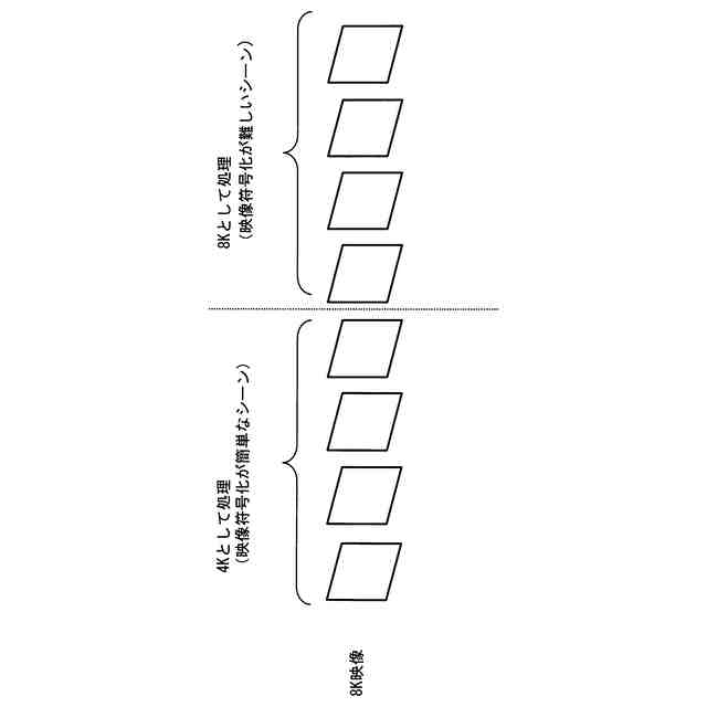 日本において、2018年12月から開始されている新4K8K衛星放送における伝送容量は約100Mbpsであり、HEVC方式で1つの8K映像が送出されている。よって、VVC方式の採用で映像ビットレートを半減できたとしても、次世代地上放送の伝送容量の約40Mbpsでは、複雑な絵柄や動きのあるシーンにおいて8K映像の品質をサービス品質レベルに保つことは困難である。