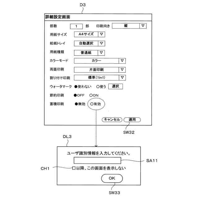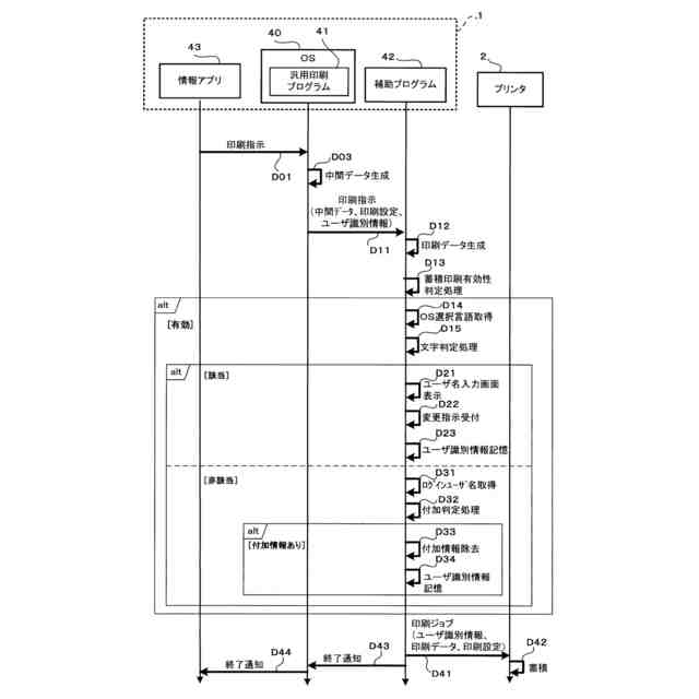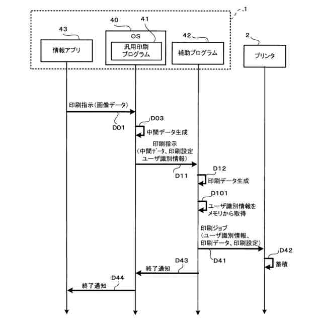 OS標準の汎用印刷プログラムが印刷ジョブを生成する際、必ずしもプリンタが扱えるユーザ識別情報を印刷ジョブに付与するとは限らない。一方で、プリンタがメモリに蓄積された印刷ジョブの実行をその印刷ジョブに付与されたユーザ識別情報に基づいて決定する場合、プリンタが扱えないユーザ識別情報が付与された印刷ジョブを実行できない場合がある。そのため、OS標準の汎用印刷プログラムを用いて蓄積印刷を実現するには、改善の余地がある。