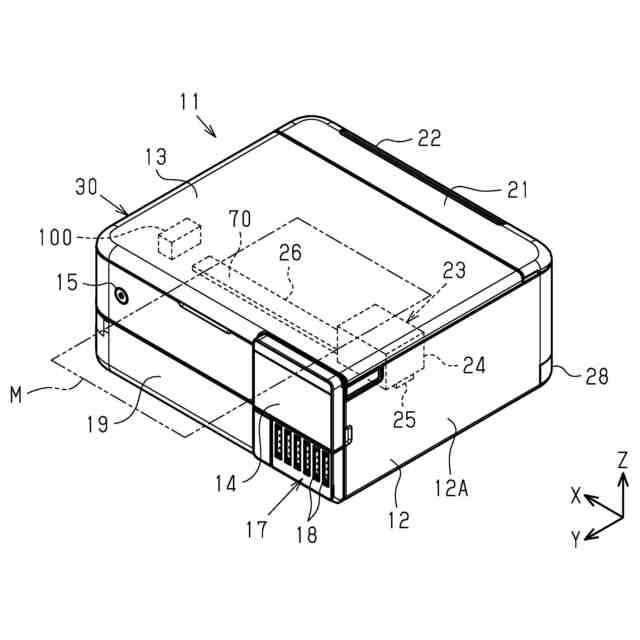また、Z軸は鉛直方向Zと平行な仮想軸である。X軸と平行な両方向が、吐出ヘッド25を含む記録部23が往復走査される方向を指す。そのため、記録部23が走査される方向を「走査方向X」ともいう。また、Y軸と平行な一方向が、吐出ヘッド25が媒体Mに記録する記録位置における媒体Mの搬送方向を指す。そのため、記録位置における媒体Mの搬送方向を「搬送方向Y」ともいう。なお、Y軸において記録装置11における後述する表示部14が配置される面側を前とし、前とは反対側を後という。また、媒体Mが搬送される搬送経路は全域においてY軸と平行である訳ではなく、搬送経路上の媒体Mの位置に応じて搬送方向は変化する。