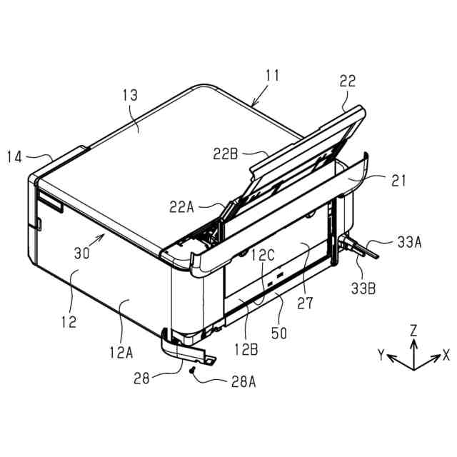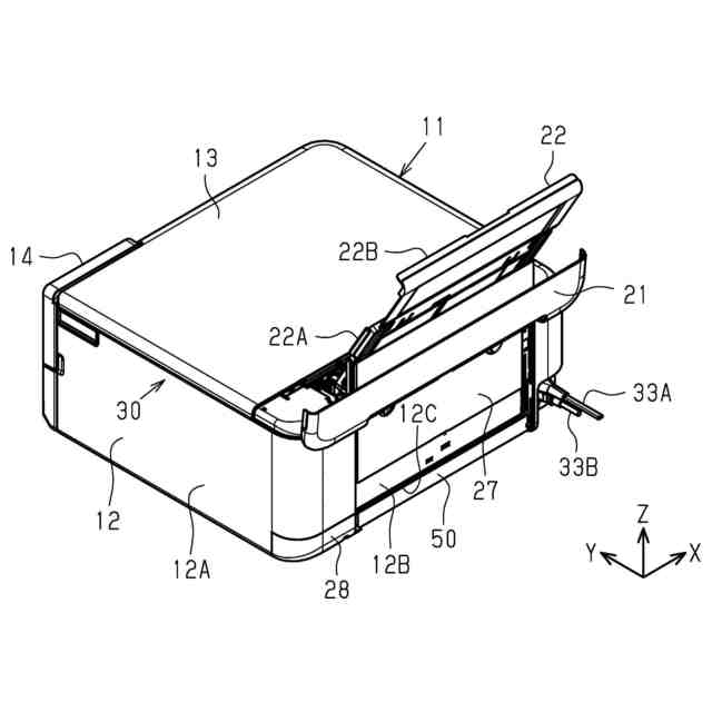 図1に示す記録装置11は、シリアル記録方式のインクジェットプリンターである。図1に示すように、記録装置11は、装置本体12と、装置本体12の上部に開閉可能に設けられたカバー13とを備える。装置本体12は、記録に係る各種の機構を収容する筐体12Aを備える。記録装置11は、全体として略直方体状をなしている。本例の記録装置11は、装置本体12の上部に画像読取装置30(スキャナー)を備える複合機である。