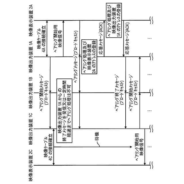 従来技術では、映像出力装置である親機と、映像表示素子である子機との間において、通信を行うためには、ネットワーク上のペアリングが必要であり、例えば特許文献1(以下、従来例という)に係る発明では、当該通信の通信速度を向上することができるペアリング方法が開示されている。
