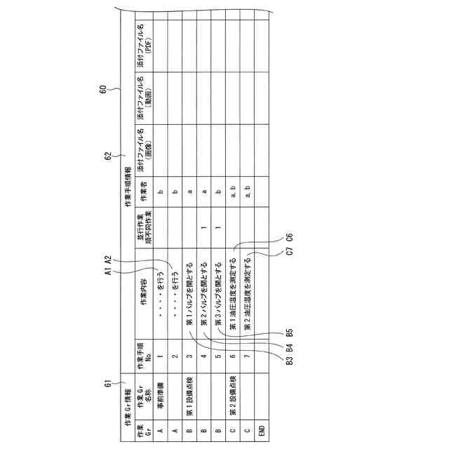 図1に示す作業支援システムにおける管理PCで作成される作業情報の一例の一部を示す図である。