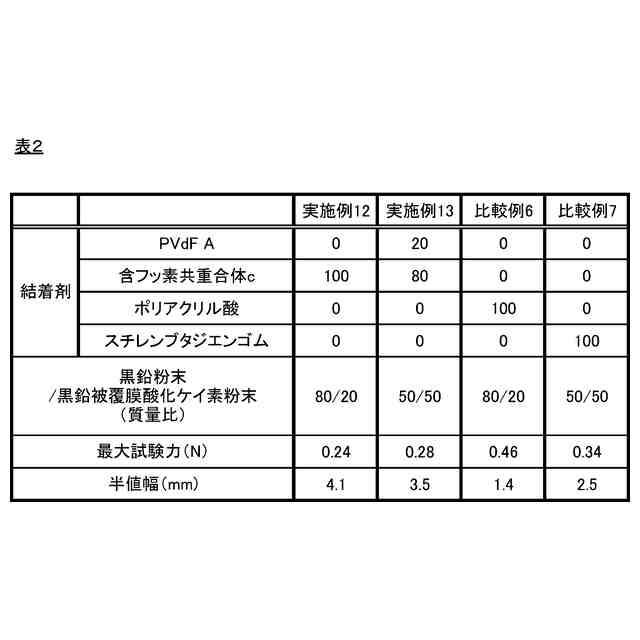 特許文献2には、含フッ素重合体を含む結着剤であって、前記含フッ素重合体は、ビニリデンフルオライドに基づく重合単位及びアミド基(-CO-NRR’(R及びR’は、同一又は異なって、夫々水素原子又は置換基を有してもよいアルキル基を表す。))又はアミド結合(-CO-NR”-(R”は、水素原子、置換基を有してもよいアルキル基又は置換基を有してもよいフェニル基を表す。))を有する単量体に基づく重合単位を有し、溶液粘度が10~20,000mPa・sであることを特徴とする結着剤が記載されている。