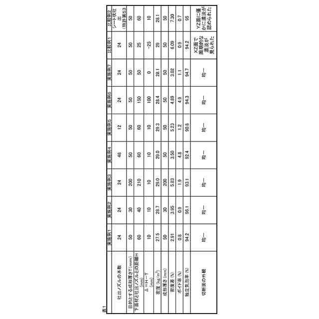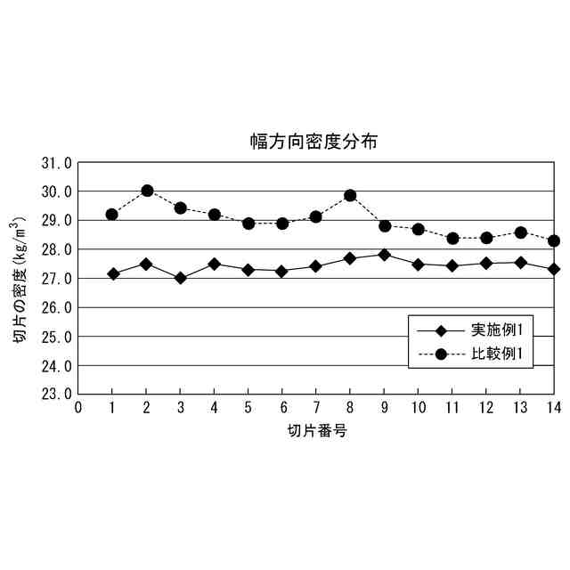 また、フェノール樹脂発泡体を幅方向と奥行方向で切断して小片にした場合、切断面に周期的な色の濃淡が現れ、切断面の外観が不均一になる場合があった。小片の切断面の外観が不均一であると、小片の集合体の外観も不均一となり、集合体の外観が損なわれることがあった。