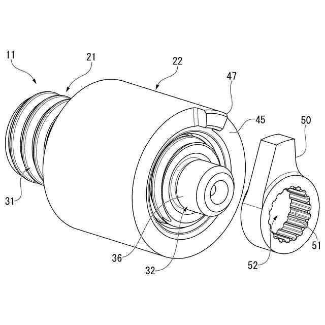 特許文献1のボールねじ機構では、ねじ軸にストッパ部品が取り付けられている。ストッパ部品がナットの一部に当接することでねじ軸とナットとの間の相対回転が制限される。ストッパ部品の内周面、及びねじ軸の外周面は、機械加工によって形成されたスプラインをそれぞれ有する。ストッパ部品の穴にねじ軸が挿入され、スプライン同士がかみ合うことでストッパ部品とねじ軸とが互いに係合される。こうしたスプライン係合において、ねじ軸とストッパ部品との間の相対回転が防止されるとともに、ねじ軸とストッパ部品との間でトルクが伝達される。