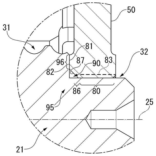 前記内周面と前記第2部分との嵌合部に隣接しかつ、前記嵌合時に生じた削片の収容を許容する空間が設けられている、