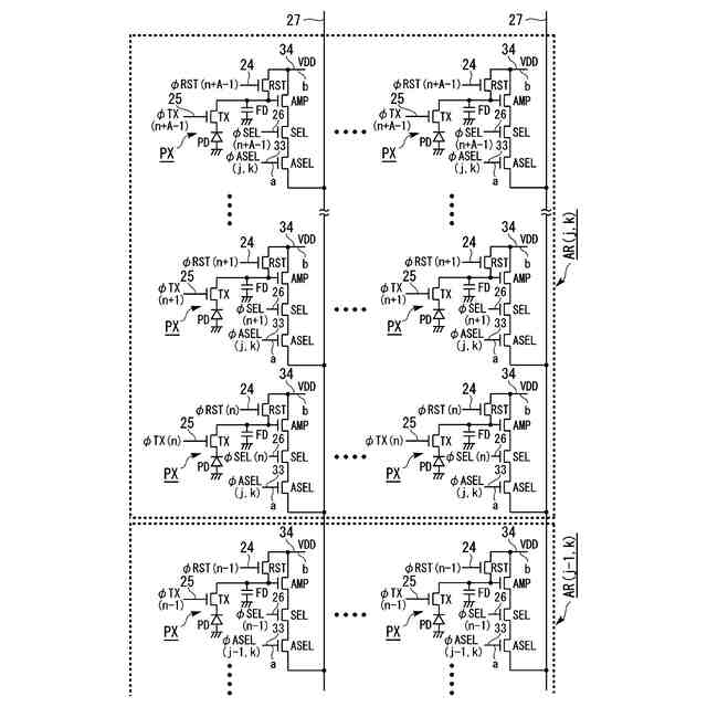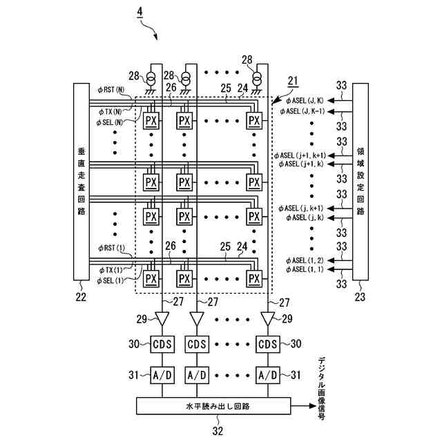 第5の態様による固体撮像素子は、前記第2乃至第4のいずれかの態様において、前記部分領域が複数あり、前記複数の部分領域の各行の前記第2選択部又は前記第1選択部を選択しつつ、前記第2選択部又は前記第1選択部が選択された行に対して読み出し制御を行う制御部を備えるものである。