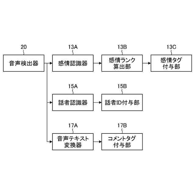 前記音声データに基づいて人間の感情を認識する感情認識器と、を備え、