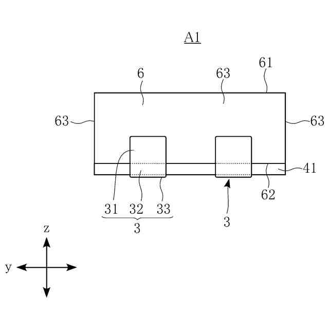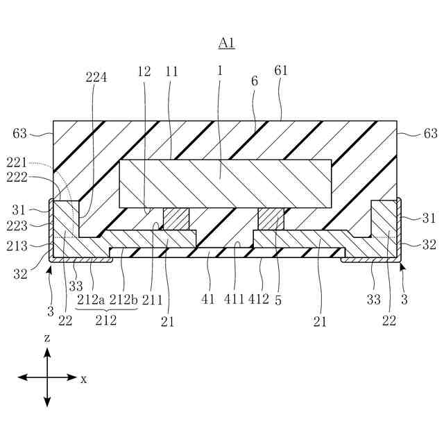 【解決手段】半導体装置は、厚さ方向(z方向)について互いに反対側を向く素子主面および素子裏面を有する半導体素子と、半導体素子に電気的に接続された配線層21と、配線層21の一部および半導体素子を覆う封止樹脂6と、を備える。配線層21は、素子裏面に対向しつつ半導体素子に電気的に接続された配線層主面211と、z方向について配線層主面211と反対側を向く配線層裏面212と有する。配線層裏面212は、z方向に突出する突出部214を含む。突出部214は、z方向に直交する方向に見て、先細りの断面形状を有する。