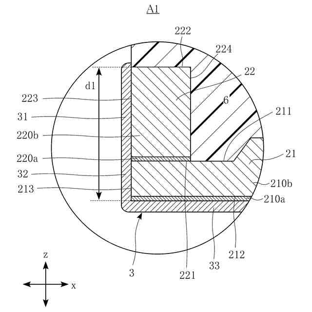 前記外部電極は、前記柱状部の前記露出側面を覆う第1被覆部を含む、