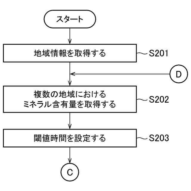 前記水中のミネラル含有量に基いて前記閾値時間を設定することは、前記複数の地域における水道水中のミネラル含有量と前記設置地域における水道水中のミネラル含有量との関係に基いて前記閾値時間を設定することを含む