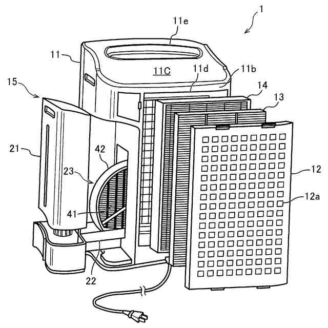 特許文献1は、空気清浄機を開示する。当該空気清浄機は、加湿機能を有する。当該空気清浄機においては、加湿フィルタが、トレイに貯められた水を吸収し、風路を流れる空気を通過させ、通過させる空気を吸収した水に接触させて通過させる空気を加湿する(段落0011,0024,0027,0034及び0035)。